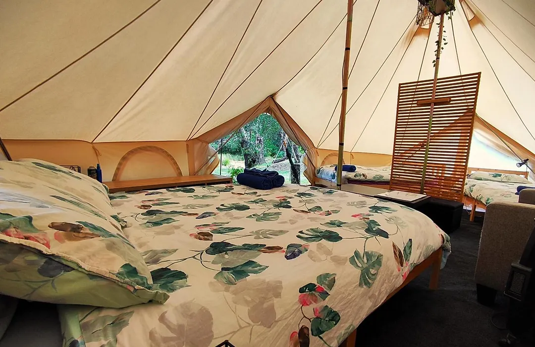 Garden views can be enjoyed from the luxury tent. There is a shared bathroom complete with complimentary toiletries and towels.
